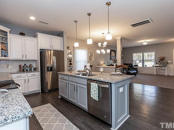 Beautiful 2 story home in an absolutely gorgeous community! Minutes to downtown Raleigh. 3 bedroom, 2 and 1/2 baths with a study or extra bedroom downstairs. Custom cabinets, granite counters with a huge island and farm style sink! Perfect size bedrooms with a huge walk in closet in the master! This home looks and feels brand new!! Huge lot that has been beautifully landscaped and fenced. Lot backs up to a farm so tons of privacy!! Low hoa dues! This home will not last long!