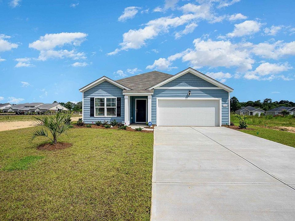 Looking for convenience to all the amenities that the South Strand has to offer at an affordable price? Look no further than Oak Estates East! This community features our Express homes which means your piece of the American Dream is within reach. This Aria plan is the perfect choice for any stage of life whether you are buying your first home or downsizing. Featuring a bright and airy open floor plan that is great for guests visiting you at the beach and a kitchen that boasts 36" cabinetry, granite countertops, a large working island with breakfast bar, pantry with ample storage, and all stainless Whirlpool appliances including a refrigerator. Sliding glass doors off the dining area lead to the rear covered porch creating a seamless transition from indoor to outdoor living. The split bedroom floorplan creates a private primary bedroom suite with a walk-in closet and spacious bathroom offering a double vanity and 5' shower. Blinds will be included throughout the house on all standard sized windows and the living room and all bedrooms will be pre-wired for cable and ceiling fans. Two-car garage with garage door opener plus our QuickTie framing system. It gets better- this is America's Smart Home! Control the thermostat, front door light and lock, and video doorbell from your smartphone or with voice commands to Alexa. *Photos are of a similar Aria home. (Home and community information, including pricing, included features, terms, availability and amenities, are subject to change prior to sale at any time without notice or obligation. Square footages are approximate. Pictures, photographs, colors, features, and sizes are for illustration purposes only and will vary from the homes as built. Equal housing opportunity builder.)