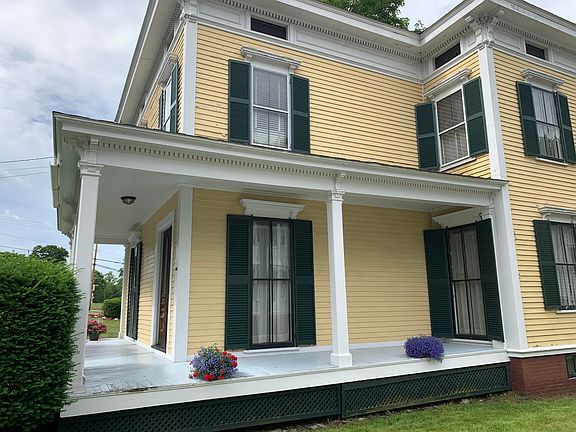 Built by ship Captain Seth Woodard in 1853, this stately, historic, Italianate home awaits your vision and revitalization. Rare floor-to-ceiling windows, original molding and trim, and distinctive period details abound throughout. Grand entryway with curved staircase, double parlors with hardwood floors and a matched pair of rare Edison gas/electric chandeliers, plus a formal dining room with French crystal chandelier. A back staircase allows second floor access from the kitchen to all four bedrooms. Kitchen has sunny breakfast nook with skylight, walk-in pantry, Viking four-burner range with convection oven, Miele dishwasher and custom cherry cabinets with colonial brass knobs. A large 25x25-foot storage room off the kitchen sits atop a huge 25x25-foot barn with a 10-foot ceiling that can be converted into a family great room, artist studio, workshop, office space or garage. The attic has 8 foot ceiling for potential new living space and the stand-up cellar with concrete floor is dry. Sunny, south-facing porch enters into the kitchen. With only two owners in the last 85 years, this historic home has solid bones, incredible detail and great potential. Walls are 100% insulated, house completely re-wired in 2012, architectural 50-year shingles installed on main house around 2004 and barn stripped and shingled in 2021. With south-facing windows, the house is incredibly sunny, with impressive passive solar heating.