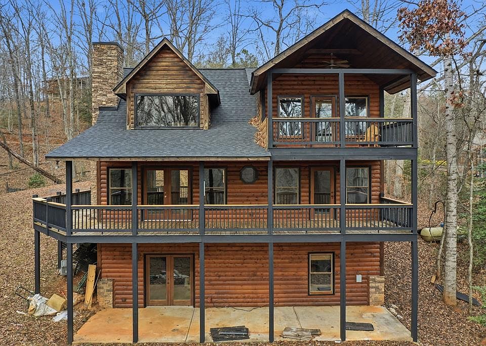 More photos coming 12/3/25!! Experience mountain living with a touch of celebrity shine in this three-story cabin retreat in Mineral Bluff-set on 1.4 wooded acres and crafted for privacy, comfort, and unforgettable gatherings. Past guests include John Travolta and Mariah Carey, so yes, this home has stories. Motivated seller. Priced to make your move easy. Inside, warm pine floors and walls set the tone for relaxed luxury. The main level features an inviting dry-stack rock fireplace, an open kitchen with granite countertops, and a French door leading to a fully finished terrace level-complete with a second fireplace and brand-new berber carpet. Whether you're hosting guests or slipping away for quiet weekends, the thoughtful layout offers space for everyone. Three levels of decking give you sunrise coffee spots, sunset wine porches, and plenty of room to breathe in that crisp North Georgia air. The cabin is also wired for a hot tub, includes a gas line to the front porch for your grill, and has a new gravel driveway plus a brand-new roof-premium updates you won't have to think twice about. Secure your getaway, investment rental, or full-time escape in one of Mineral Bluff's most sought-after pockets. This cabin is ready for its next chapter-will it be yours?
