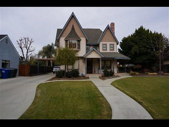 Custom Victorian home featuring wrap around porches, stained glass windows, detached 2 car garage with long driveway and mature landscaping in a desirable area located just east of Reedley College. Enter the spacious Living room with custom fireplace, wood floors, molding and french doors with views of both front and back yard. The kitchen features garden window, pantry, eating bar and eating nook. Formal dining room, family room and half bath with laundry, complete the downstairs. Upstairs includes Huge Master bedroom with on-suite bath. Also included are two good sized bedrooms, one is currently used as an office and a guest bath. This is a one of a kind home ready for you to enjoy.