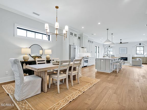 The TRUE limestone brick with ALL through white color and black windows inside and out create an ageless finish palette. Featuring classic yet refined architectural elements, this home is perfect for those seeking a warm and welcoming retreat in a timeless design. The design with 10 foot ceilings and 8 foot doors is a great mix of flexibility, luxury, and efficiency. The first floor plan was built to maximize the openness of this design while still allowing for functional built-ins extensive storage and unique design features. The cabinets on the backside of the oversized island, walk in pantry and all wood cabinetry to the ceiling will amaze you for your storage needs! 36'' Bosch Natural gas range, included Bosch refrigerator and a sleek hidden microwave drawer add to the appeal. Downstairs owner's retreat will welcome you to the livability of all everyday needs on the first floor. It also provides access to your recessed porch to enjoy the outdoor lifestyle. A motorized awning will keep the grilling stamped concrete area nice and cool! Additional bedroom and full bath round out the first floor. Upstairs offers an additional junior ensuite bedroom and two additional secondary bedrooms, full bath and loft for a second living space. Michael Christian Homes are well known for the attention to detail and thought out design aspects of each of their unique plans. The backyard will connect you with nature with pond and fountain to lure you to relaxation. Waterstone is a water access community to Pages Creek with day dock, 1 ½ mile nature walking trails thought out, clubhouse, swimming pool, two fire pits, community nature area called Ibis Island and two pickleball courts! Explore the possibilities of peaceful living in this modern, warm and welcoming gem.