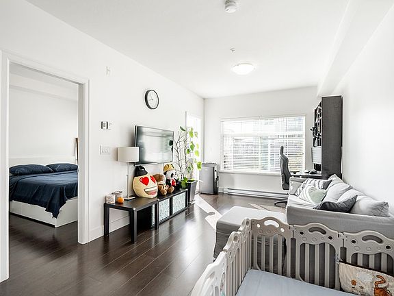 Welcome to Salix in Clayton Heights! Bright south-facing 1-bedroom, 590+ sq.ft. unit with a lovely view. Includes 2 parking stalls and a huge 4’x8’ garage-style storage locker. Features stainless steel appliances, stone countertops, soft-closing cabinets with underlighting, large pantry, and wide plank laminate flooring. Enjoy 9-ft ceilings, an open layout, full-size washer/dryer, and a spacious covered patio. Big living room windows offer a peek a view of Mt. Baker. Great amenities: lounge, gym, bike room & guest suite. Walking distance to Willowbrook Mall, restaurants & transit. Rentals and pets welcome! Walking distance to the future skytrain! Call now for your private viewing!