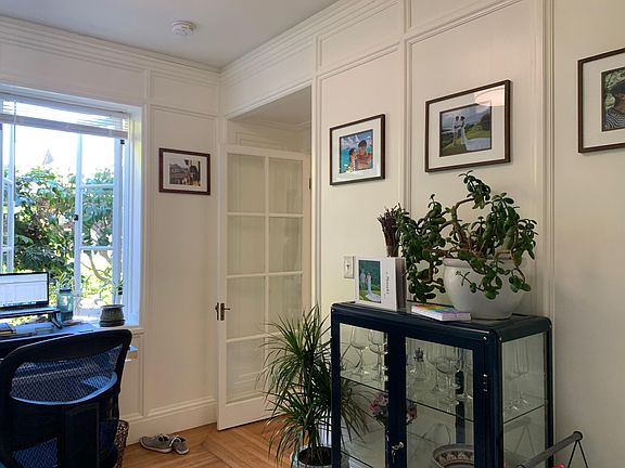Beautiful 1+ bedroom unit in lovely 1920's 4-plex in ideal location just a block to College Avenue shops, restaurants, cafes, and a short walk to BART, bus.. Lots of charming features including hardwood floors, built-ins, dining room with wonderful built-ins with leaded glass. Kitchen with gas stove, dishwasher. Spacious living room, formal dining room (has been used used as office or guest room), lovely green outlooks. Laundry in building. Shared yard and garden perfect for barbecuing and sunning. Small, quiet pet negotiable. One year, then month-to-month. No smoking. On street permit parking.