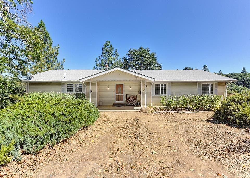 Wonderful country home on 9.9 secluded acres, surrounded by vineyards with scenic views in all directions. There is a wrap-around deck with views in three directions. Outside the front entrance is an area under the oak trees for a picnic table for family gatherings and views of the sunset. The living room has a wood stove. There are 3 bedrooms, 2 baths with the bedrooms on the main floor. Large kitchen with a separate eating area and a formal dining room. Downstairs is a large family room with built-in bookcases, a gas fireplace, and a wet bar. A large workshop is also downstairs off of the family room and has an outside entrance. A half bath is in the shed by the driveway with the well pump. The second shed by the house has storage. Roof installed in 2006. There is a chicken coop and outbuildings for livestock. Not suitable for a vineyard as goats were raised on the property. Many wineries nearby in Fair Play, Somerset and Plymouth. Close to the El Dorado National Forest.