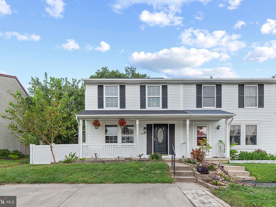 Charming colonial duplex in the highly sought-after Elkridge Town Center, offering 1,560 square feet of well-designed living space with 3 bedrooms and 2 full bathrooms. A 2-car driveway and a pathway adorned with lush landscaping guide you to a welcoming front porch. Step inside to the traditional main level, where you'll find laminate flooring throughout. The sunlit living room features a striking stone accent wall, the dining room offers deck access, and the kitchen completes this inviting space. The charming eat-in kitchen boasts stainless steel appliances, a breakfast bar that comfortably seats 2-3, butcher block countertops, and a stunning mosaic tile backsplash. It also features ample cabinetry, including some with glass doors, adding a touch of eclectic design. The upper level features 3 carpeted bedrooms, including a spacious primary bedroom with ample closet space. A full bathroom with Mediterranean-style finishes completes this level. The fully finished lower level impresses with a spacious family room, featuring ample storage closets and a beautifully wood-paneled wall down the staircase, adding a natural touch to the space. This level also includes a full bathroom, a versatile bonus room, and a workshop with a concealed laundry closet for added convenience. Enjoy outdoor dining on the recently installed deck, which overlooks a fully-fenced, lush backyard featuring garden beds and a storage shed. Elkridge Town Center is a bustling commercial and retail hub located along U.S. Route 1, known for its variety of shops, dining options, and services, featuring a mix of national retailers, specialty stores, and restaurants, catering to a wide range of tastes and needs.