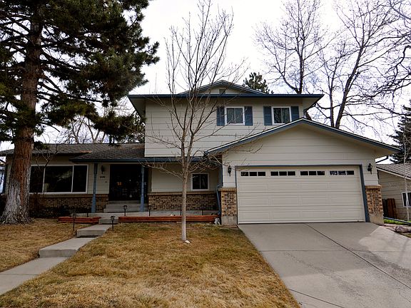 Wonderful home in El Vista gracefully poised on a private, lushly landscaped lot with peek-a-boo mountain views! Bright, spacious layout, vaulted ceilings, and an abundance of natural light! Eat-in kitchen overlooks into the large family room below with an exposed brick wood burning fireplace and built-in shelving. Simply stunning backyard features a covered patio and beautiful landscaping with garden area and sprinkler system! 3 bedrooms located upstairs to include the king sized master bedroom with private bathroom. The 2 additional bedrooms share a full bathroom. Tons of unfinished storage in the basement along with a 4th bedroom (non-conforming). New garage door (2016), New roof (2015), New triple pane windows (2013), internet enabled garage door opener, Central Air with duel air AC & Evaporative Cooler. Desirable Cherry Creek Schools. Do not miss this opportunity, schedule your showing today!