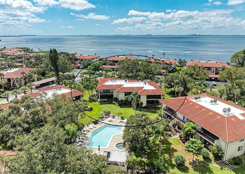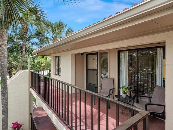 NO ASSESMENTS AND ROOFS REPLACED JUST 3 YEARS AGO.--PEEK OF THE SARASOTA BAY, right outside your front door. This sunny 2 bedroom, 2-bath (second floor optimal for viewing) has a peek-a-boo view of Sarasota Bay from your Front sitting area. View the famous western Florida Sunsets every day from this your own piece of paradise. This condo is situated in and around Palm trees, lush tropical landscaping, lagoons, wildlife and 100 year old Oak trees that canopy so much of the community giving it the name (WILD OAK BAY). Wild Oak Bay has a resort-like ambiance, truly paradise. Its the type of place where you just cant help yourself but want to go out and walk to enjoy the beauty of this hidden community every day. The North view can be viewed from the kitchen through the Livingroom and lanai overlooking the community pool and a beautiful lake. The front door and front balcony face south but receives protection from the sun from mature oak trees that canopy over your viewing area and allows enjoyable seating all day long with endless sunsets and peaks of Sarasota Bay. The unit comes fully furnished with everything you need to start enjoying the Florida lifestyle, just bring some clothes and your swimsuit. Recent improvements include a newer HVAC system (2022), water heater (2022), and wood-look ceramic tile on the rear lanai (2023), Updated guest bathroom (2024). A touchpad lock is installed for your convenience, so you will not have to worry about forgetting your key. Less than 5 minutes away are the semi-private IMG Golf and Country Club, IMG Sports Academy, and Bradenton Tennis/(pickleball) Club. The IMG golf course does not require memberships to schedule and play a round just minutes down the road. Many beaches are twenty minutes west; and the cultural mecca of Sarasota, is twenty minutes south. Terrific for seasonal or full-time living. This is the picture-perfect Florida condo you’ve been hoping to find in the rarely available south end of Wild Oak Bay. This condo really has something special and you will feel it to the moment you walk in the door. Why rent... The American dream is right here waiting for you. Grab this before the snowbirds come... You will be so glad you did!