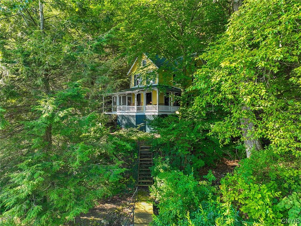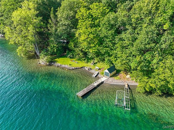 Welcome to this majestic property on the South end of Skaneateles Lake! Nestled on 5.46 acres, this private getaway features an impressive 711 Ft. of gorgeous waterfront. The charming 3bd 1ba cottage has been well-maintained and is ready for you to enjoy all it has to offer. A picturesque waterfall flows through the property, creating a tranquil atmosphere that will leave you feeling at peace. Every window has been strategically designed to offer breathtaking views, allowing you to truly immerse yourself in the stunning surroundings. The front porch provides the perfect spot to enjoy your morning coffee or admire the sunset to fully appreciate the beauty of the property . For those who love lake activities, whether it be swimming, boating or fishing this property has you covered. With a permanent pier, an additional dock, and a hoist, you'll have everything you need to make the most of Skaneateles Lake. This property is fully equipped to fulfill your desires. This property offers a unique opportunity to create lasting memories on Skaneateles Lake. With its idyllic location, and an array of amenities, this private retreat is ready to be enjoyed and cherished by its new owner.