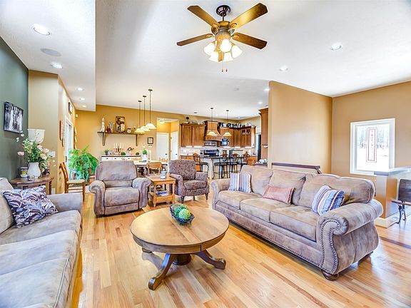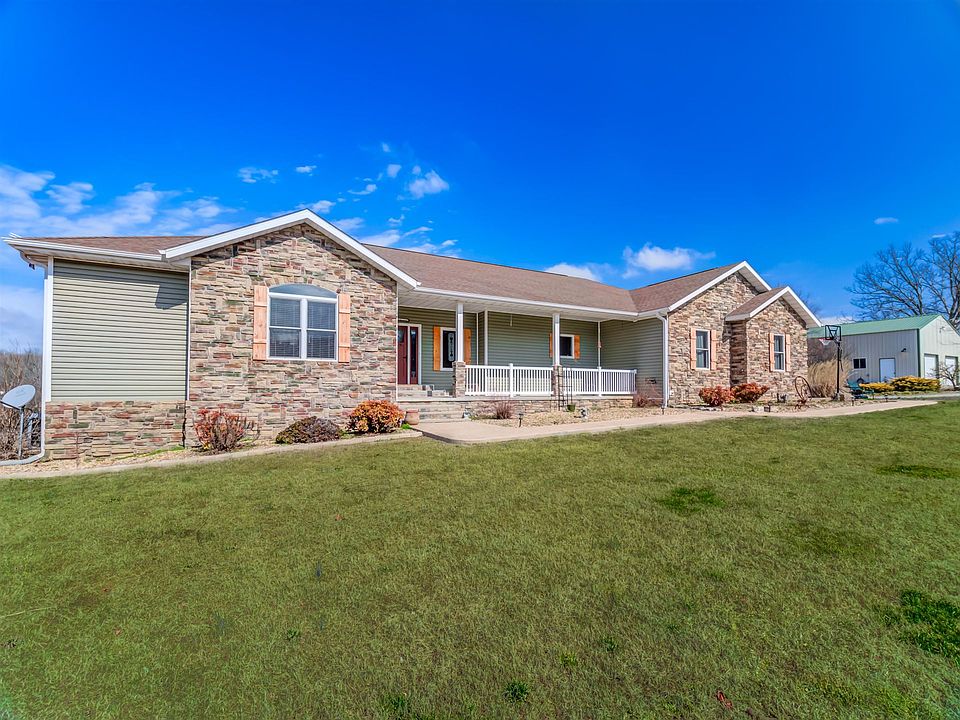 This custom 4 bedroom 3 bath home has the best of everything. A country feel close to town on pavement and just across the road from the municipal golf course. The property offers granite counter tops, hardwood floors, Anderson windows and doors, heated and cooled oversize garage, tank-less water heater, central vac, security system, water softener, dual fuel heat pump, two decks, large utility/mud room on main level, above ground pool with non-slip surface, 30x40 dream shop, tree house, pond all on 4 acres m/l.