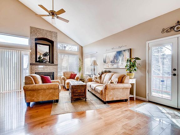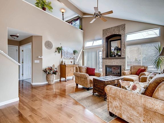 Charming home located in Pinery Glen! Inviting living room with custom tile fireplace, and lots of natural light. Updated kitchen with granite countertops, stainless steel appliances, gas stove, and breakfast nook. Main floor master suite with five piece master bath, soaking tub, and walk-in closet. Bay windows in kitchen and master bedroom. Nutmeg hickory prefinished wood floors, custom tile work throughout, large loft, main floor laundry room. French doors that lead to a wrap around deck, gorgeous backyard with hot tub and wonderful outdoor living space. A/C. Located along the trail to a green belt and in a cul-de-sac. Don't miss this one!