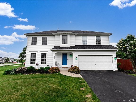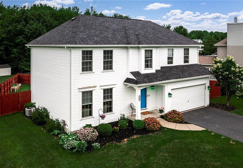 Welcome to your dream home! This beautifully crafted Marrano-built residence, constructed in 2004, offers 1,782 sq. ft. of living space with impeccable updates. Featuring 4 bedrooms & 2.5 baths, this home is perfect for comfortable living & entertaining. The extra-large primary bedroom addition, completed in 2021, boasts a lavish bathroom & spacious walk-in closet as well as uplighting & luxury vinyl floors. Upstairs, find 3 more generous bedrooms & a full bath. Gleaming hardwood floors adorn the downstairs area, adding warmth & sophistication. Step outside the sliding glass door to the expansive stamped concrete patio with a covered porch, perfect for large gatherings or quiet evenings. The 2-car attached garage meets all your storage needs, providing ample space for vehicles & more. Enjoy endless hot water with dual hot water tanks (2019 & 2021), plus peace of mind with a new furnace (2019), new roof w/ architectural shingles (2021) & new vinyl siding (2021). This home perfectly blends modern amenities and timeless design. Don’t miss the chance to make it yours!