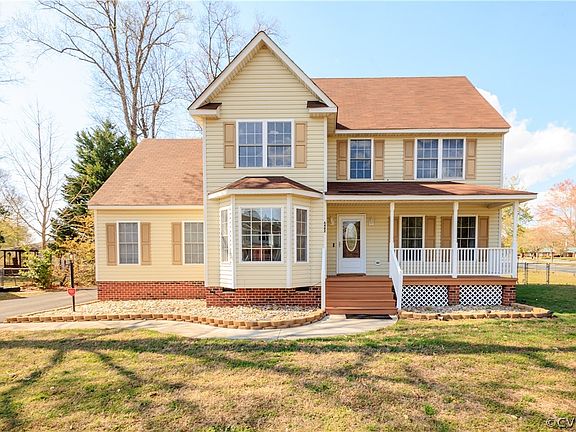 You can live LARGE here with this huge 2-story home that features 2265 square feet, 4 bedrooms, 2.5 baths, multiple living rooms, and comes with almost half an acre on an established tree-lined street of Prince George! The main-level features a country front porch inviting you to the living room with a cozy gas fireplace, there’s a formal dining room with an elegant bowed window off the entrance for any guests you may entertain, a large eat-in updated kitchen with all the stainless steel appliances included, the laundry area (with washing machine and dryer included!) is conveniently situated inside the kitchen to make doing chores a breeze while cooking, and there’s a sunken family room off the kitchen with patio doors leading outside. The flooring throughout the home is new (wood floors replaced and luxury vinyl plank in the bathrooms!); the plumbing is updated; the roof is new (2023); the electrical panel box has been updated (2023); the HVAC has been updated (2019); the dishwasher has been replaced (2023); and the washer/dryer set is new (2022). The back yard is fully fenced, and the matching shed stays, too! There’s extra-wide paved off-street parking and your home would be on a level corner lot at the end of the neighborhood. You’re a minute away from the closest grocery store (Food Lion,) less than 10 minutes away from both Fort Lee and Fort Gregg-Adams, and 10 minutes away from the Appomattox River & James River waterfronts in Hopewell! Call for your tour soon before this well-maintained Colonial home is snatched up for the summer!