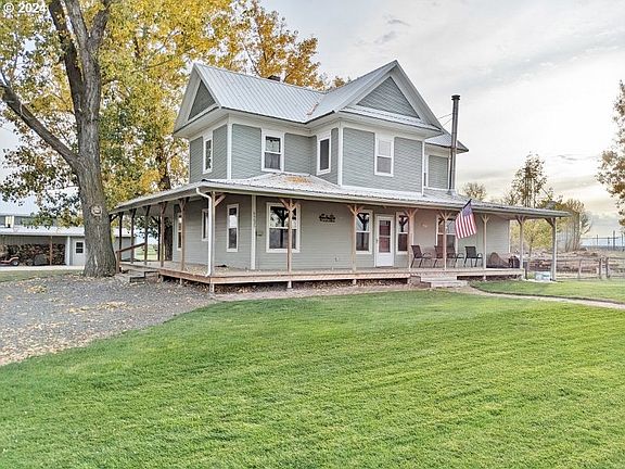Dreaming of a wrap around porch? This two story farmhouse has exactly that with valley and mountain views all around! Located on one acre (adjoining vacant 2 acre lot to be sold in conjunction) this farmhouse features 4 bedrooms, 2.5 bathrooms, living room, kitchen, dining room, den/office, and laundry/mud room! One bedroom and en suite is conveniently located on the main floor. Come enjoy the acreage with various fruit trees, and a hazelnut tree mini orchard of 25 trees! With multiple outbuildings, this property comes with an over-sized shed, barn, and an impressive shop. Including over 2,100 sq. ft., the shop has plentiful shop space, storage and a partially finished area that is a must see! This property is rare, schedule an appointment to see it! Buyer to do due diligence on possible school districts.