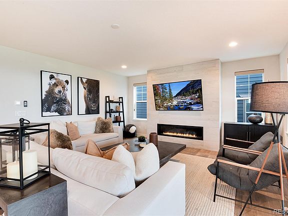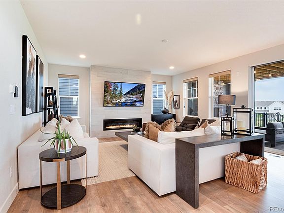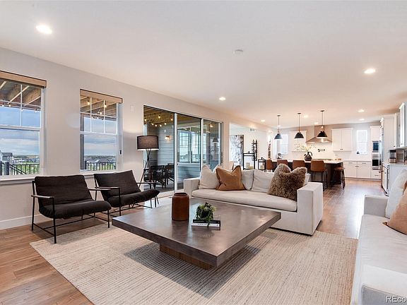 Experience unparalleled elegance and comfort in this stunning luxury home by Tri Pointe, located in the prestigious Canyons of Castle Pines. Perfectly situated to offer both privacy and breathtaking natural beauty. This residence boasts a gourmet kitchen with high-end appliances, convenient pot filler over the Wolf stove, oversized kitchen island with quartz countertops and a large walk-in pantry. Off the 3 car garage you step into a spacious mudroom. Enjoy serene views and privacy as the home backs onto lush green space, and unwind on the covered back deck, complete with a cozy fireplace, ideal for year-round entertaining. Upstairs, the primary bedroom offers a luxurious retreat, featuring a spa-like bathroom with a soaking tub, a large shower, and a private covered deck with stunning mountain views. The second floor also includes a versatile loft and two additional bedrooms, one with an ensuite bath. Conveniently located on the upper level is a large laundry room. The main floor features a study with French doors and a bedroom with a full bath, while the finished walk-out basement provides a spacious family room, bedroom and full bath, along with a stylish wet bar, adding versatility for gatherings. Conveniently located near parks and 15 miles of scenic walking trails, residents can also enjoy upscale community amenities including a pool, The Exchange Coffee House, and a range of social events including outdoor concerts on The Green. Exciting new additions are coming soon to the neighborhood, including a restaurant, bar, fitness center, and pickleball courts. Additionally, the home falls within the highly-regarded Douglas County Schools district. This property offers luxury, convenience, and a vibrant community lifestyle, making it a truly extraordinary place to call home.