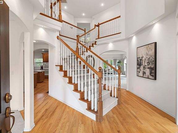 Stunning rare custom designed and built brick Colonial home in exclusive McNary Heights, an unincorporated area outside Milwaukie, sits on a quiet cul-de-sac. It has a large flat croquet lawn that would be perfect for a putting green or possibly a pool. It gently slopes to a conservation area with trees and creek winter views from three decks and many rooms. This area is set so far apart from the stress of traffic noise and urban living, that the only sound you?ll hear, is the voice of singing birds. This home features a grand entryway that sets the tone for the rest of the house. With almost 5000 square feet of living space, this home offers plenty of room for guests, a lower level apartment/in law/nanny quarters. The main level features features a spacious living room with a cozy fireplace and a wall of windows facing the serenity of nature. From there, you can entertain guests on your large balcony, that spans across the kitchen/breakfast nook to the family room. The spacious kitchen includes a gas cook island, built in dishwasher, double oven and desk with cabinetry. Off the kitchen is a butler?s pantry, laundry room, cozy breakfast room, and an oversized 3 car garage with workbench. The main floor also includes a formal dining room, a half bath, and an office. As you enter the second floor from the grand staircase, you?ll find a huge primary bedroom suite with a luxurious en-suite bathroom and a large walk-in closet. From there, walk out to your private balcony to enjoy your morning coffee. The second of the three bedrooms on this floor, has a ceiling fan and is next to a full bath.. The huge lower level light-filled Family Room opens to an expansive deck. The massive stone fireplace is flanked by beautiful custom cherrywood cabinetry. The granite-topped cherrywood bar has a seating area, bar chairs, copper sink, glass front cabinets, and wine storage room. French doors lead to a fitness room w bath and large bedroom w a full bath. Office. Pet free.One owner.