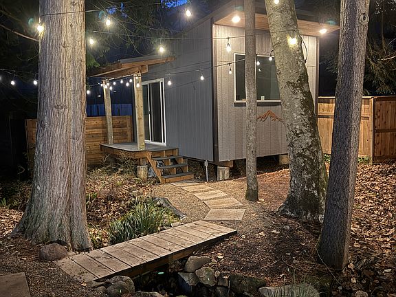 The main house features 2 bedrooms and 1 bathroom, complemented by a charming detached ADU in the backyard ideal for a home office, guest space, or creative studio. A picturesque creek runs through the property, complete with a small footbridge leading to a serene pond shared with the neighboring property, creating a truly tranquil atmosphere.