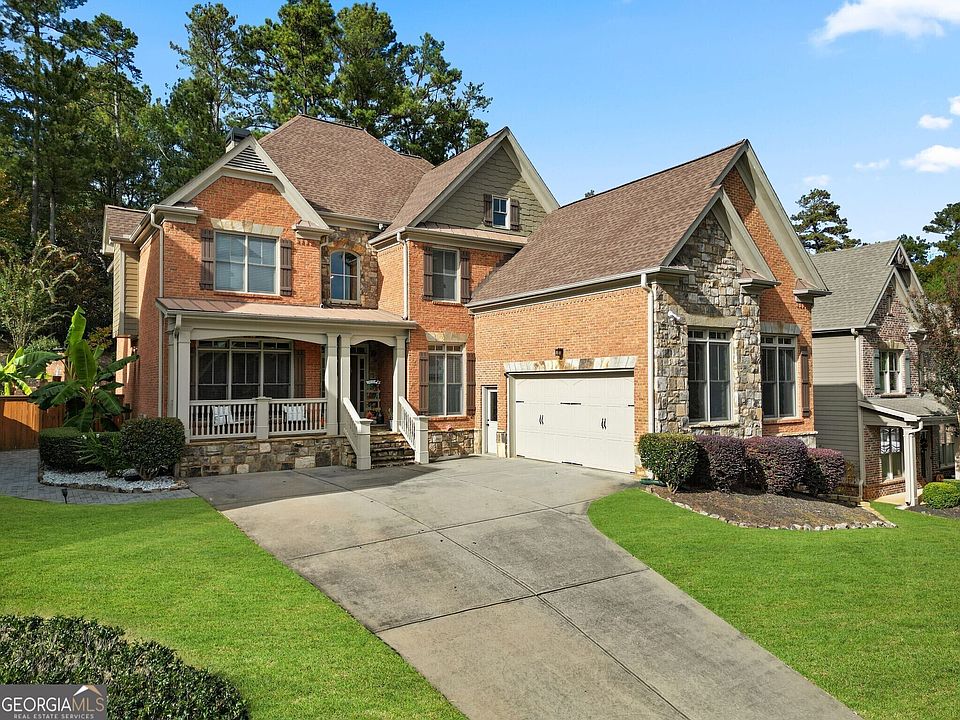 Discover your dream home in the serene Lanier Springs neighborhood, just moments from Lake Lanier. Boasting fresh updates, including brand-new premium carpeting throughout and a recent paint refresh, this home is a modern sanctuary ready for new owners. Step inside to find a spacious and well-designed layout featuring a main-level bedroom, four large bedrooms on the upper floor, a bonus room for extra space, and a private office right off the front entry. The residence includes four full bathrooms, ensuring ample privacy and comfort for family and guests alike. The expansive primary suite is a highlight, offering a spa-like bath and an oversized walk-in closet with a laundry chute making laundry days a breeze. The partially finished basement presents endless possibilities for customization, already stubbed out and prepared for your unique touches. The home's exterior, a tasteful mix of stone and brick, sits on a sizable lot and is designed for easy maintenance. This property is a perfect blend of entertainment and everyday living. The backyard is a charming retreat, featuring a vast outdoor fireplace, a spacious patio, and beautifully crafted stone walkways, ideal for hosting or enjoying peaceful evenings. Inside, the home continues to impress with an elegant den, boasting high 10-foot ceilings and a cozy fireplace, with views to a stunning, open-plan kitchen. The kitchen shines with beautiful granite countertops, stone backsplash, pristine white cabinets, and modern stainless steel appliances. This immaculate and well-cared-for property is ready to welcome its new owners. Don't miss your chance to experience the epitome of lakeside living. Schedule a viewing today and take the first step towards making this luxurious haven your own.