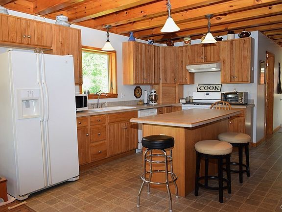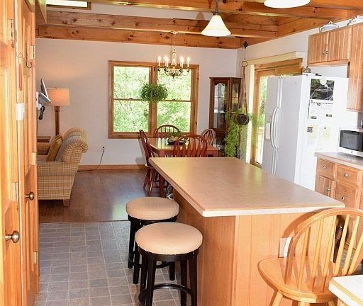 When you enter this property you will feel its tranquility in this 2 bedroom 1 bath log home with a detached garage. This home welcomes you with a country style kitchen and dining area that offers plenty of space for those get togethers. Follow your patio doors to your fenced in back lawn complete with a deck to kick back and relax on. Main living room offers exposed beams with pine cathedral ceilings and is accented by a stone gas fireplace. Large spacious loft upstairs makes for a beautiful master bedroom, office or den. The quaint front porch offer a partial screened in area which is perfect for those buggy nights. U shaped driveway leads to you a large shed with electric which makes for a great addition for storage or a playhouse. 1 car detached garage has a room and a bonus tip out off the back. Easy commute to interstate and close to a community park. 2022-07-18