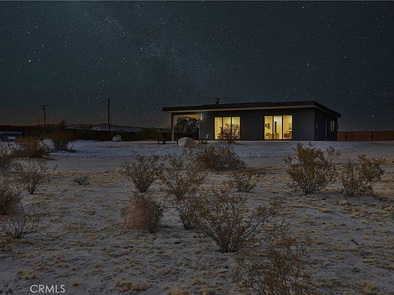 Introducing Solaris Sanctuary, your perfectly located and fully furnished ultra-modern desert retreat with multiple value-add opportunities. This newly built Joshua Tree vacation home sits on 1.39 acres and was built for the future in mind being located minutes away from the Joshua Tree Music Festival Area and famous Transmission sculpture. This luxury home features two huge 8'x10' glass sliders which open to capture the incredible desert views facing the property. This home features two full-size bedrooms and an outdoor shower, which would pair perfectly with outdoor amenities such as a pool and hot tub if the new owner wishes. The front of the home has a large patio that offers a fantastic place for calming afternoons and desert sunsets. The fire pit area is perfect for campfire stories and marshmallow roasts while the surrounding gravel and boulder lot provides ample space for an additional unit, parking for guests and RVs. The open-concept living room is ideal for entertaining or relaxing, flowing naturally into the kitchen area which features sleek black stainless steel Samsung appliances (stove, microwave, and dishwasher) in addition to a brand new LG Washtower. The property has state-of-the-art hardwired POE (Power Over Ethernet) Ring Doorbell & Camera in addition to an enterprise-grade Eero WiFi system to ensure consistent and high-speed connectivity. One of the unique features of this home is its location. It's a quick trip to downtown, yet offers all the serenity and nature of being in the world-famous Mojave Desert. Located in the Sunfair neighborhood and a hop, skip, and jump to Pioneertown and Joshua Tree National Park! Includes paid-off solar system, indoor laundry, efficient tri-zone mini-split system for heating and AC, tankless water heater, 240V connection with potential for EV charging, quartz countertops, and polished concrete floors. A custom high-grade corrugated steel perimeter fence ensures privacy and wind protection while not impacting views. This is a brand new vacation home with acreage for value add with plenty of land for potential massive cost-seg and bonus depreciation strategies should definitely run this property by their licensed CPA and tax professionals to find out more! Don't miss the opportunity to experience this extraordinary home for yourself; an incredible value, come see it today! See Suplementals