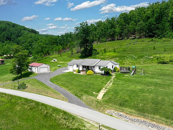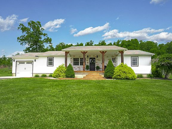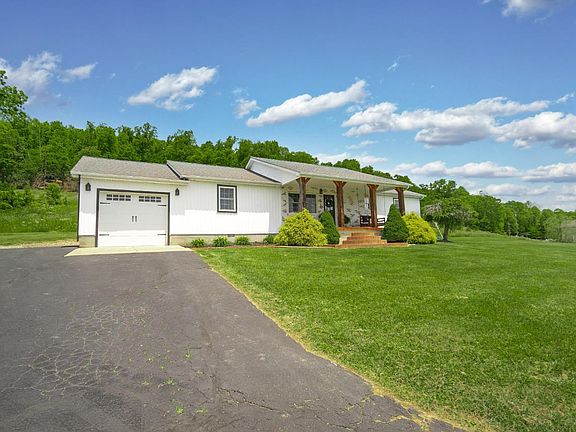 Welcome to this beautifully updated home nestled in a peaceful setting, perfect for those seeking both comfort and functionality. A blacktop driveway leads you to a charming covered front porch, inviting you to sit and enjoy the quiet surroundings. Inside the open-concept layout features a spacious living room with a cozy gas fireplace, dedicated dining area, and a stylish kitchen complete with an island for extra prep space and seating. 3 large bedrooms and 2 full bathrooms ensure convenience for family and guests, while a small office with additional storage provides the perfect spot to work from home or manage daily tasks. The attached garage provides easy access to the home, and outdoors a large 34x32 detached garage adds even more storage. This rural setting is centrally located 20 min from Lucasville, 25 min to Peebles, 30 min to Portsmouth, or 30 min from West Union, giving the opportunity for country living with accessible amenities in any direction! You don't wanna miss this!