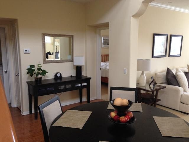 This beautiful townhome is in the exclusive gated community of Portico. It is three stories with an open floor plan, hardwood floors, new carpets, new blinds, and lots of windows providing plenty of natural light. The newly updated kitchen includes upgraded cabinetry, marble countertops, refrigerator, gas stove and microwave, and opens to a dining area with soaring ceilings and family room with fireplace and custom ceiling fan. The third story private master bedroom has a peek view of the ocean, and includes a walk-in closet, ceiling fan, and master bath with double sinks and tub/shower. The second bedroom has a ceiling fan, mirrored closet door, private vanity, and secondary closet. The den with French doors opens to the balcony and offers a stunning view of the pool. The 2-car attached spacious garage includes a washer/dryer plus built-in storage. The quiet neighborhood is nestled in Carlsbad's exclusive Rancho Carrillo Community, near shopping & restaurants, Trader Joe's, library, and excellent schools. Rancho Carrillo features an extensive network of hiking/biking trails, swimming pool, spa, and community clubhouse, plus easy access to beaches, golf, parks, and recreation. No pets, no smoking/no vaping. Attached 2-Car Garage Washer/Dryer in unit Ocean view Pool view Patio/Balcony Central Air Ceiling Fans Fireplace Hardwood floors Dishwasher Microwave Range and Stovetop Refrigerator Garbage Disposal Gated Community Community Club House Community Playground/Park Community Pool & Spa Location: Carlsbad Price: $2,900 Minimum 1 year lease Square Footage: 1,322 sq. ft. Beds: 2 + Den / Baths: 2 Security Deposit: $2,900 Pets: No pets please! Renter pays for water, gas and electric. No smoking or vaping allowed. No pets please.