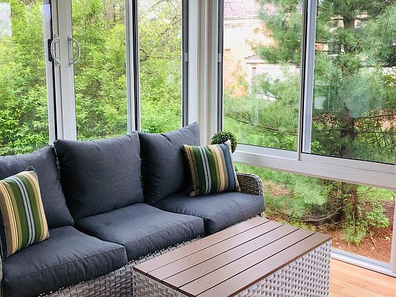 This lovely home has an open concept & beautiful hardwood floors that greet you the moment you step inside. Once inside, the wooded setting can still be enjoyed out your large kitchen window or when relaxing in the 3 season sunroom. In any season this is a great place to call home. HOA 347.50 quarterly = 116 per month (Bedrm drapes do not convey)