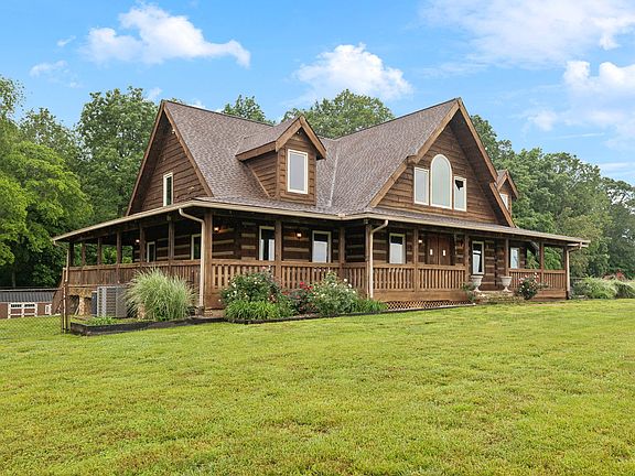 Picture Perfect Log Home With Country Views On 5+ Acres! Over 4,000 S.F., 4 BR's, 3 Full BA's, 1 Half BA, Hardwoods (zero carpet)! Living Room with Stacked Stone Wood-Burning Fireplace, Open Kitchen with Breakfast Area, Separate Laundry Room, Loft Area, Partially Finished Basement with lots of Storage Space & Man Cave (not included in SF). Owners Suite with *New* Renovated Bathroom w/ Tiled Shower, Claw-Foot Tub & Double Vanities! Office being used as Custom Walk-In Closet! Wraparound Covered Porch, Deck, Outdoor Fireplace, and Gorgeous Inground Pool (heated) with Slide and Waterfall! Additional Tiny House, RV Carport, 2 Car Carport, Chicken Coop, Goat or Small Animal Enclosure, & Multiple Storage Buildings Included! Gatlinburg-like Setting in the Backyard with Creek! Roof only 1 year old!