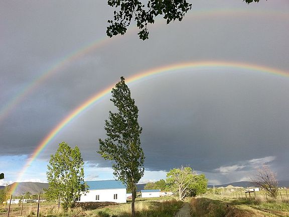 House has vinyl siding. Vaulted ceilings. Natural gas. Incredible views! Additional 2000 sq. ft. Cleary steel building, finished interior, ten foot ceilings, well insulated, heated, plumbed, lots of windows with views and the floating wood floor is suspended on rubber pads. Great for physical classes of all sorts. A small bath (unfinished and bedroom). Very private at end of road. Surrounded by small farms. Five minutes from downtown Montrose. Several acres of Development potential.