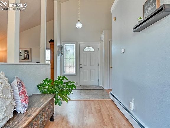Welcome to this beautiful 4-bedroom, 4-bathroom home located in the desirable Rockrimmon neighborhood, nestled on a spacious corner lot in School District-20. As you enter, you'll be greeted by a bright and airy living room filled with natural light, creating a welcoming space for family and guests. On the other side of the main level, you'll find the kitchen that connects to a convenient located laundry room. From the kitchen, step through one of two sliding glass doors into the fully fenced spacious backyard, perfect for outdoor entertaining. This two-story home offers plenty of space with three bedrooms upstairs and a finished basement that includes a versatile bedroom with its own ensuite bathroom—ideal as a second master or guest suite. There are three mini splits throughout, allowing you to enjoy year-round comfort. The roof was completed in 2019, and the water heater is brand new as of 2025, offering peace of mind for years to come. Located just minutes from I-25, Golden Hills Park, Ute Valley Park for hiking, and only three minutes from Safeway and other nearby amenities, this home provides the perfect mix of convenience and outdoor adventure. This home is move-in ready, offering comfort, functionality, and a prime location.