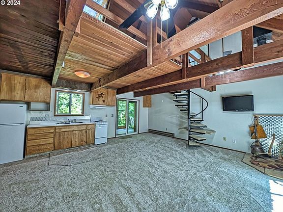 Enjoy the riverside community of Timberline Rim located near all Mt. Hood's premium recreational activities! The home features a newly carpeted and painted great room with beamed ceilings. Living room, kitchen and dining area combo and a primary bedroom, and a bathroom, are on the main level. A spiral staircase will take you upstairs to a massive loft complete with vaulted wood ceilings, skylights and a half bath. If you need lots of room for the kids, an office for remote work or a potential space to create an additional walled off bedroom, this is it. Both the front and back doors have covered access. A carport is on the side of the lot. A spacious outbuilding for storage or to tuck away your mountain toys is in the back yard. If you love plants, this yard is for you! Amazing herbs, medicinal plants and fruit are planted throughout. The community has many common areas. Enjoy paths that take you to the Sandy River. Summertime bonus features a swimming pool at "The Lodge", tennis and basketball courts. Skiers will love this location that's only 20 minutes to the slopes. Sandy Ridge Biking Park is a quick ride down the road. A 27 hole golf course is 10 minutes away. Mt. Hood National Forest for premium hiking. Low HOA fees at $349/yr. All on sewer and community water. Get out of the city and enjoy this gem on Mt. Hood!