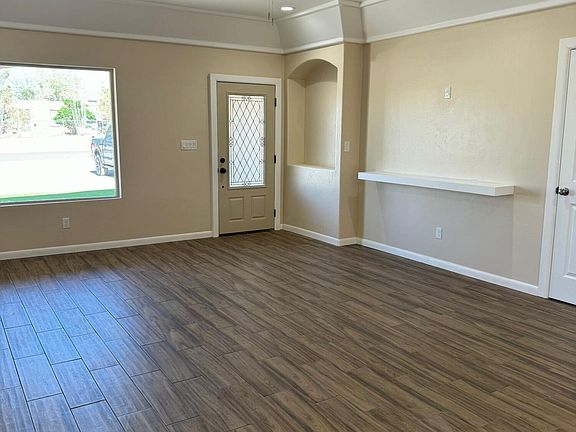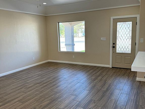 Beautiful single story new home features a great room, dining room, gorgeous kitchen with granite countertops, stainless steel appliances, with a gas cook-top, microwave, dishwasher, island, & pantry. Primary suite has walk-in closet & 3/4 bath with walk-in shower and double vanities. Two more bedrooms and one full bathroom. Custom details throughout the house to include plenty of storage, wood tile flooring, a poxy flooring in garage, unique rod iron gates, etc. Home features large backyard with so much potential. RV parking available on the side of the home.