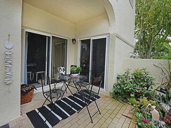Most desireable Corner unit FIRST FLOOR and rarely available 2 bedroom 2 bath condo in non-equity Boca Pointe. LARGE SCREENED TERRACE with lovely GARDEN VIEWS and large side private patio. Main living area has neutral tile. Updated eat in kitchen with Granite counters, stainless steel appliances and stackable W/D. Spacious UPDATED master bath with oversize shower and walk in closet. Truly lovely unit to enjoy the Boca Pointe Lifestyle. All ages and pet freindly! The Plum subdivision has its own community pool just a short walk away. New owners can lease immediately( 4x per yr). Membership packages are available to Boca Pointe CC, but not mandatory. Close to shops, restaurants and Highways