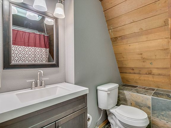 Charming A-frame cabin, sleeps 6 comfortably and rents out regularly throughout the year. Great income potential! Beautiful heated slate floors, remodeled bathroom and updated kitchen. New wood stove in 2020. 1 bed + loft bedroom, nice size living area. Cabin is sold fully-furnished (exc tv/wii/router) and turn-key ready! New french doors overlook back porch and forested area. 7,000 sqft lot with plenty of room for RV parking or additional outbuilding/garage. 20 Minutes to Mt. Hood!