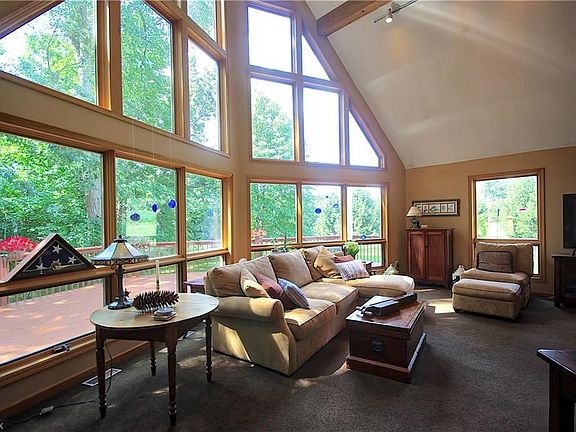 INCREDIBLE two story A-Frame Great Room with soaring Floor to Ceiling Windows that look out over acres of gorgeous woods. Phenomenal Wrap Around Deck with stunning views. Beautiful modern Country Kitchen with updated appliances and ample counter space. A 1st floor laundry as well as a half bath finish off this amazing level. The Second floor features 2 spacious bedrooms, a loft, and large Master Bath that is accessed by the Master bedroom and the hallway to service the 2nd bedroom as well. The Finished Lower Level Walk-out comes complete with additional Full Bath and 3rd Bedroom, Family room with double doors leading out to the covered patio, and ample storage areas!!!! Pictures cannot do this property justice, you have to see it for yourself!!! *NEW ROOF 2018 (Lifetime transferable warranty) with Ice Guard, Hot Water Tank 2016, Well pump (pressure) 2015, water softener 2018, Dishwasher 2017, 16x12 vinyl sided shed, Etc.