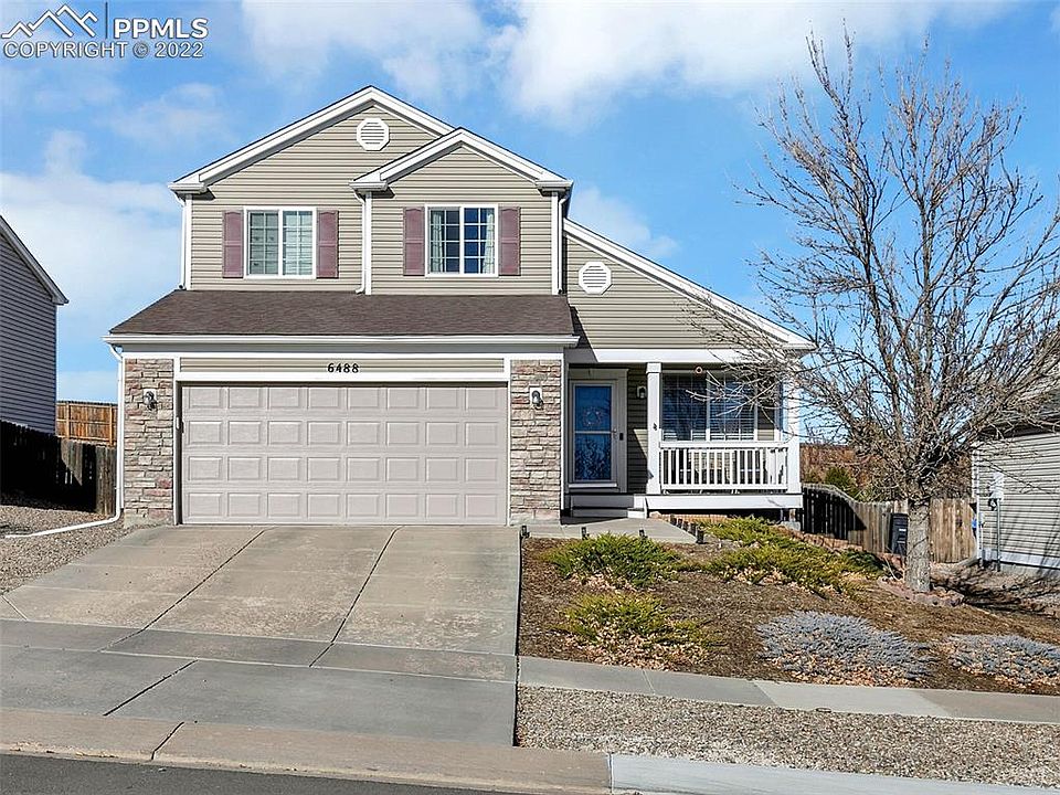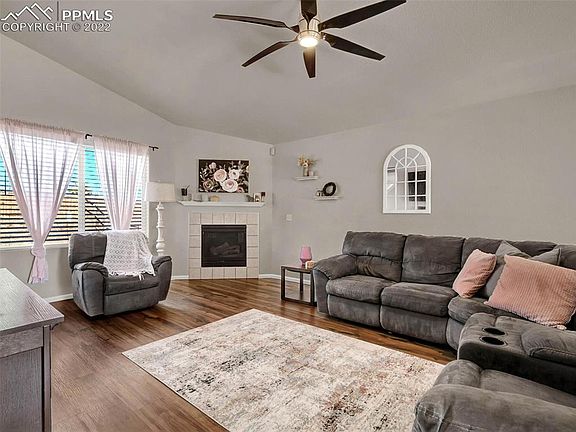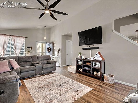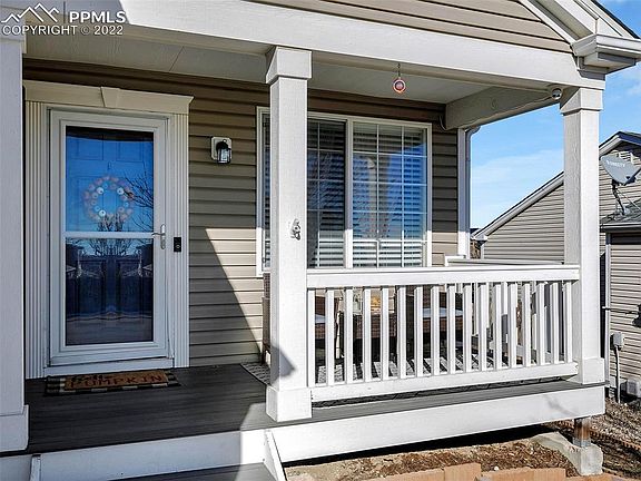 Light & bright 3 bedroom, 3 bathroom home within walking distance to Ridgeview Elementary School & Vista Ridge High School. Move-in ready 2 story floor plan built in 2003. Step inside to find an open & airy Living Room with vaulted ceilings and a gas fireplace for cool Colorado Winter nights. Durable laminate floors cover the main level. The kitchen includes newer stainless steel appliances, a large pantry and has space for an eat- in dining table. Enjoy easy access to the fully fenced back yard off the kitchen through a sliding glass door. The upper level consists of 3 bedrooms including the Primary suite with vaulted ceilings and a private bathroom with a walk in closet. There is a second full bathroom for the other two upper level bedrooms. Central Air Conditioning keeps the house cool in the summer months. The basement is unfinished and currently being used as a work out room and a playroom for the kids, with extra storage room . Make this house your own and finish the basement how you prefer! Conveniently located near the Powers Corridor for easy access to all military bases; Peterson AFB, Fort Carson and the Air Force Academy. Welcome home! Please see the basement building plans under supplements to see how the basement could be finished.