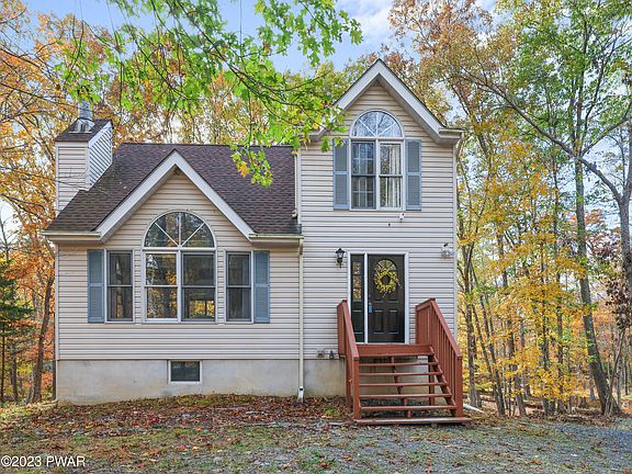 READY FOR A RESET? Come and live full-time or as a weekend getaway to this spacious STREAMFRONT home nestled in the woods on the quiet end of Decker Road in a four season award winning community in the Poconos. Enjoy a NEWLY remodeled kitchen, NEW flooring throughout!. Enjoy warm evenings by wood burning fireplace or listen to the stream on the back deck overlooking deep 3/4 acre lot w/ 245 feet of stream frontage. Main floor has a bedroom w/ attached full bath, Cathedral ceiling to second floor loft, two bedrooms and full bath. Huge open area walk-out basement where laundry, sink, half bath and storage create a great space for gaming and gatherings. Conveniently located near main gate and community amenities and bus stop. Close to waterfalls, hiking, & skiing. Less than 2 hrs. to NYC!, Beds Description: 2+BED 2nd, Beds Description: 1Bed1st, Baths: 1 Bath Level 1, Baths: 1 Bath Level 2, Baths: 1/2 Bath Lev L, Eating Area: Modern KT, Sewer: WS Comm Central
