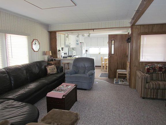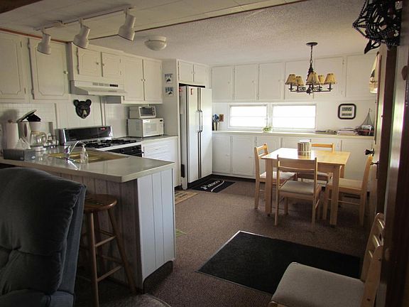 Owners pride shows through on this well maintained, cozy mobile home with views of all-sports Little Bear Lake. The curb appeal draws you in to enjoy the concrete patio with fire pit, covered deck & a good mix of nature. Put your vehicle & toys in the garage accessed from a paved road. It's large attic can be finished to make a fantastic game room or bunk house with a great lake view or keep just for storage. Step onto the deck that provides shade or rain cover & also lets one bask in the sun. The house welcomes you with a neat & clean open flr plan of living rm & eat in kitchen, 2 bdrms with some built in cabinets, full bath with hook up for laundry plus all protected from the elements with a metal roof. Cute as a button & makes a nice getaway. Lake lot available MLS 313662 or both 31366
