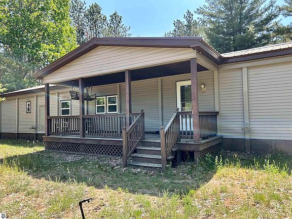 Remarkable property on 10 beautiful treed acres offers a solid manufactured home with a large addition and covered front porch, vinyl siding and metal roof. Additional storage in the oversized 2-car garage with 100 amp service. This serene location offers a cozy home with potential, awaiting your personal updates. The wooded landscape provides privacy and opportunities for many outdoor activities. Conveniently located near state land and downtown Kingsley. Don't miss out on this unique property.