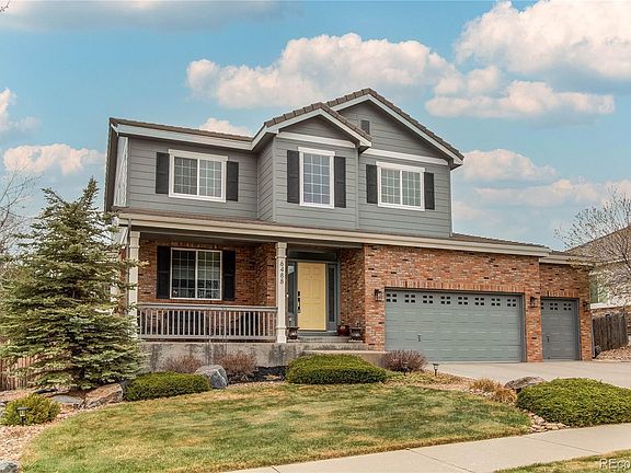 Welcome to your dream home! This meticulously maintained former model home boasts 6 bedrooms, 4 bathrooms, and an oversized 3-car garage, paired with exceptional outdoor living spaces. Step inside to discover a brand-new shiplap accent design in the dining area, adding rustic charm and texture to every meal. Entertain effortlessly on the welcoming front porch, the expansive covered back deck with canned lights, or the concrete pad in the private backyard, surrounded by mature trees, vibrant flowerbeds, and privacy fencing. The gourmet kitchen shines with granite countertops featuring rounded edges, a sleek glass tile backsplash, and a stainless steel appliance package—including double ovens and a 5-burner gas cooktop. The spacious family room invites relaxation with surround sound speakers and a cozy gas log fireplace with mantel. Upstairs, the master suite impresses with 6-inch plank flooring, a luxurious 5-piece bath with 18x18 tiles, Corian countertops, and a generous walk-in closet, alongside three secondary bedrooms. The finished garden-level basement is an entertainer’s delight, now featuring a modern electric fireplace for added warmth and ambiance, plus two additional bright bedrooms and a 3/4 bathroom. Just steps away, enjoy the community pool across the street, Pine Ridge Elementary, the Aurora Reservoir, or Southlands Mall. This home blends style, comfort, and convenience—ready for you to make it yours!