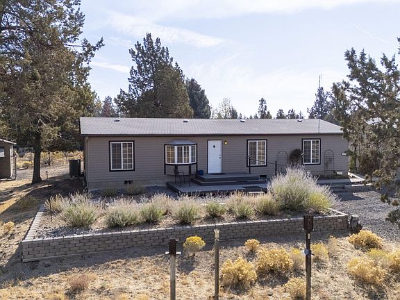 Incredible Offering on 2+ acres in a neighborhood of mostly custom homes. A perfect high desert landscape complete with gorgeous yellow rabbit brush, native grasses, purple sage and Juniper trees. This classic setting offers a blank canvas of an opportunity. The home was placed in 1991 and hasn't been moved. Inside you'll find updated bath and functional kitchen, laundry room and 3 nice sized bedrooms with walk in closets. Newer front deck to enjoy the wildlife and watch the sunset! There is a detached 2 car garage PLUS a shed in back for storage and a chicken coop or a secure space for animals. Thoughtful plantings around the home, new paver walkway plus a circular driveway. This property is ready for your ideas and represents a great opportunity! Home is clean and ready for new owner.