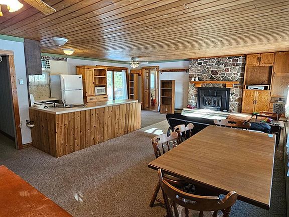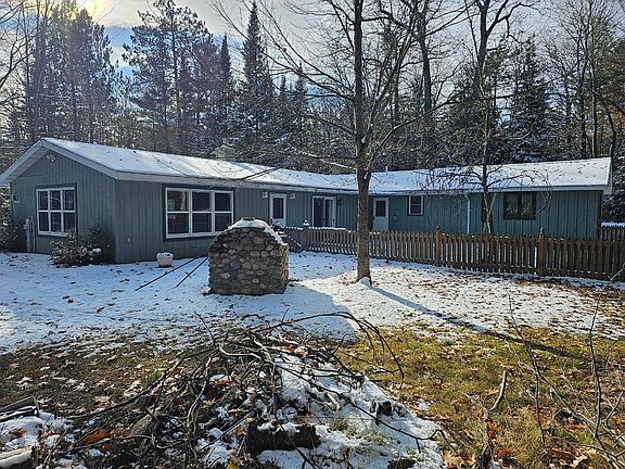 Great Opportunity to own this 3 Bedroom 1 1/2 Bath Home that sits on a 1.5 Acre Lot with a 1/8th interest in a parcel of land on the Thoroughfare of the Three Lakes Chain - Right across the street! This home offers close proximity to Shopping, Three Lakes Chain Boat Landings, Snowmobile Trails, and the Nicolet National Forest to name a few! The spacious Great Room offers Kitchen, Gas Fireplace, Dining Area, Patio Doors leading to fenced yard. There is also a large Family Room with Wood Stove and plenty of windows for a bunch of Natural Lighting! Other features include: Wrap around Paved Driveway, Nicely Treed lot, 2 Sheds behind garage for extra storage, and a a 1248 Sq Ft Detached Garage. Call Today