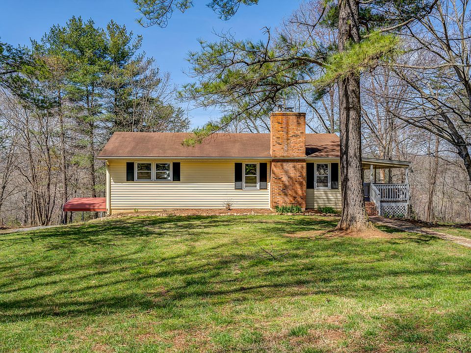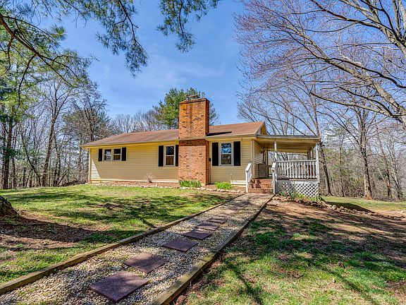 What a great, peaceful 2 1/2 acre setting close to Smith Mtn. Lake, Roanoke and Town of Bedford. Land lays nicely and features an old 1800's tobacco barn with storage upstairs that would be great for a workshop or studio. Nice home with open floor plan and wonderful large covered porch off the kitchen/dining area to relax and enjoy nature or enjoy a meal. Other features include brick masonry fireplace on level with wood stove on lower level, 2 car detached carport and plenty of space for a nice garden area. Don't miss this one as it is a home and setting you can enjoy for many years to come!