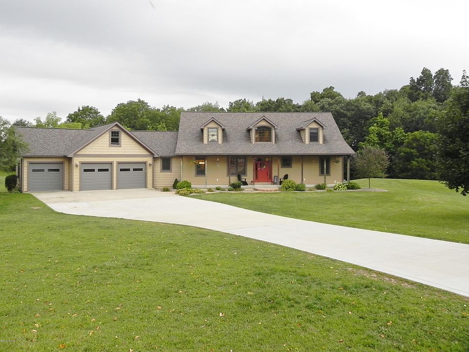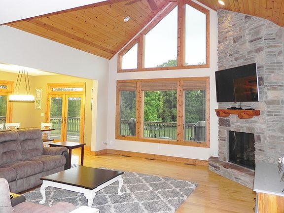 This gorgeous 5300 Sq Ft. cape cod has approx 8 1/2 acres, 7 bedrooms, 3.5 baths, and has so much to offer! Beautiful outdoor scenic views from every window. Custom built kitchen cabinets with granite counter tops and all stainless steel appliances. Living room features stone fireplace, with vaulted ceiling, and is open to the dining/kitchen. Possible additional bedrooms and bathroom in walkout level. Heated attached 3 car garage, custom detailed concrete driveway, and an outdoor wood burner. This is the perfect home for hosting family and friends with a huge back deck-over 1000 Sq ft and above ground pool with cedar decking, & beautiful patio with firepit. Huge mudroom off the garage bathroom & pet shower. Main floor office, & main floor laundry. This home is in immaculate condition!