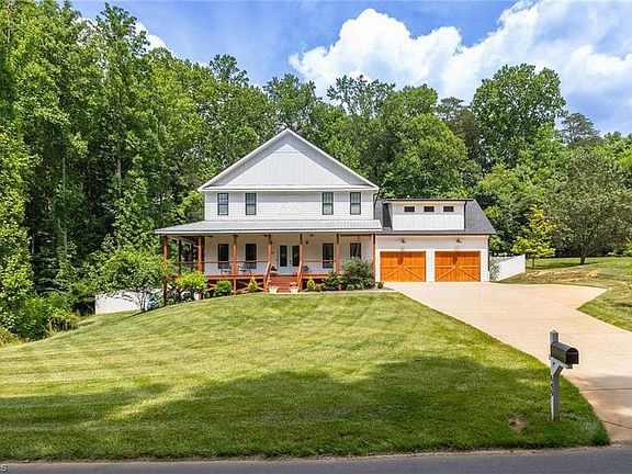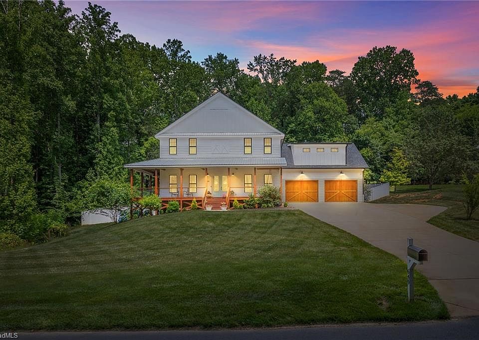 Seller offering $5K in CLOSING COSTS! All of your modern farmhouse dreams have come true! A beautiful move-in ready custom-built home on 2 acres located in the heart of the Triad. This 5 bedroom, 3.5 bath home features a wrap around porch, double doorway entry, fenced in backyard with a storage building & hot tub! Downstairs you'll find a dream kitchen, open to a huge breakfast/dining area that leads into the living room. A huge laundry room, two office/flex spaces, a drop zone off the garage & a guest bedroom with full bath. Upstairs you'll find the spacious primary bedroom with large walk-in closet & en suite bathroom with separate tub and a walk-in shower. Three other bedrooms offer plenty of space for family and guests. Also upstairs is a huge bonus room (with eave storage) with reading nooks & lots of charm! Hardwood floors, shiplap accents, a chefs kitchen, a high ceilings are just a few of the amazing features! *Virtual tour added *See agent only remarks.