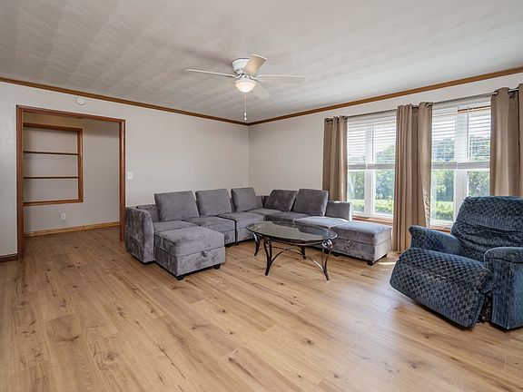 This is a GREAT home that sits on a little over an acre with a beautiful view, paved drive, fenced yard, 20x24 shop with heat/air and a storage building! Home has all new laminate flooring & fresh paint throughout, a metal roof, newer windows, open updated kitchen with an island, pantry and plenty of cabinets. You will love the gorgeous view from the living room window! Also, has a nice size utility room, and a converted garage for additional living space with heat & air and a full bath with a shower. The 20x24 shop has electric & Heat & Air, laminate, finished w sheetrock. Home is sound! It is two bedrooms. Garage conversion could be used for a 3rd BR. Property goes back to tree line, it does not end at fence. Dishwasher is only 2 years old and fridge stays. Back up propane heater, Big crawl space area, and attic fan is a plus. This is a 100% Financing RD Eligible Area