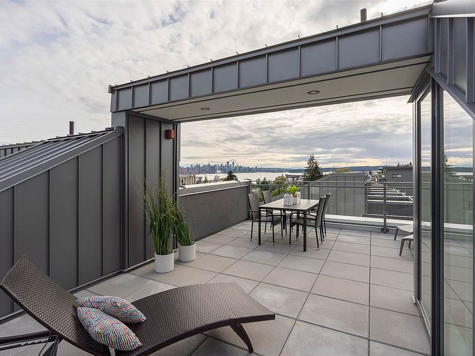 Welcome to The Morrison! This London inspired, architectural pleasing home offers everything you could need just steps from Lower Lonsdale! A LARGE ROOFTOP PATIO, PANORAMIC CITY VIEWS, AND AMPLE LIVING SPACE are just a few of the gorgeous elements of this brand-new home. This flexible floor-plan is bright, open and spacious with high end finishings! The unobstructed views of Vancouver from the sun drenched rooftop deck sets this home apart. This particular unit is unique due to a few custom features such as a walk-in shower in the master, a full kitchen island, AND an $8900 air conditioning upgrade! 2 bedrooms each with their own bathroom & a den (addition) with a gorgeous outlook! A must-see in the Lower Lonsdale Corridor!