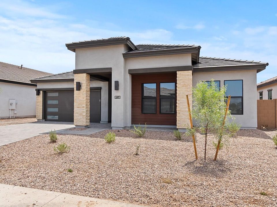 ~Special CASH Pricing Available $624,990~ Welcome to Edgewood Estates, a vibrant new community near commuter routes, The Olive Mill, and Queen Creek Marketplace. This stunning Frankfurt plan features an open layout with vaulted ceilings, a spacious Great Room, Home Office, and an Activity Room between the secondary bedrooms. The gourmet kitchen boasts a large island, white cabinets, marble-look quartz countertops, and Bosch stainless-steel appliances. Enjoy seamless indoor/outdoor living with a multi-panel sliding door leading to the covered patio, perfect for entertaining. The split floor plan offers privacy for the luxurious Primary Suite with a spa-like bath, resort-style shower, and freestanding tub. Don't miss this exceptional home!