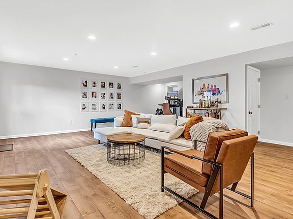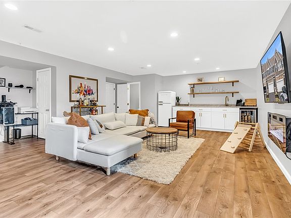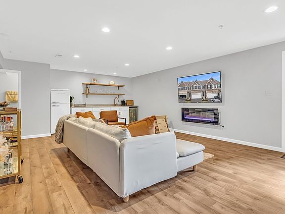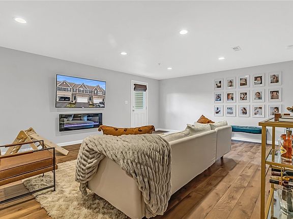 Spacious townhome in Centennial Pointe located minutes from shopping, dining, and the airport. You will find gorgeous floors throughout the open layout and ample space for entertaining in the finished lower level with a wet bar, second fridge, and half bath. The chef's kitchen features a center island, quartz countertops, 42" cabinetry, and stainless steel appliances. An additional half bath and storage closets accompany the entryway on the main floor. Patio doors open to a low-maintenance composite deck, perfect for summer cookouts after swimming in the neighborhood pool. The expansive owner's bedroom offers a tray ceiling, a walk-in closet, linen closet, and a private bath with dual sinks, a shower, and a separate tub. Two large guest bedrooms share the second full bath. The second-floor laundry is conveniently located in the hallway. Two car garage with entry off the kitchen. The HOA covers grass cutting, exterior maintenance, and the community Pool and Clubhouse.