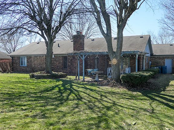 Come see this charming 3 bedroom ranch home with a basement in Center Grove's Pebble Hill neighborhood! Explore this home via interactive 3D home tour, complete with floor plans, video & more. Brick fireplace, cathedral ceiling, & exposed beams create a cabin-like environment in the living room. Finished basement area includes a built-in wet bar & a cozy wood-burning stove. Enjoy abundant cabinet storage in the kitchen along with a center island & adjacent dining room. Primary bedroom includes a spacious walk-in closet & private full bathroom with double sinks. A covered patio & mature shade trees make the backyard a great spot to relax outdoors on a warmer summer day. Finished garage & mini barn offer additional storage space.